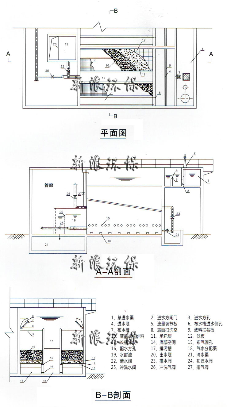 氣水混合洗水洗強(qiáng)度:5~6L/s·㎡